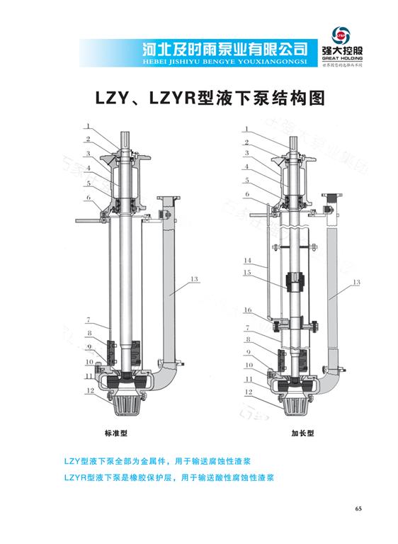 LZY、LZYR型液下渣漿泵結構圖-河北及時雨泵業有限公司